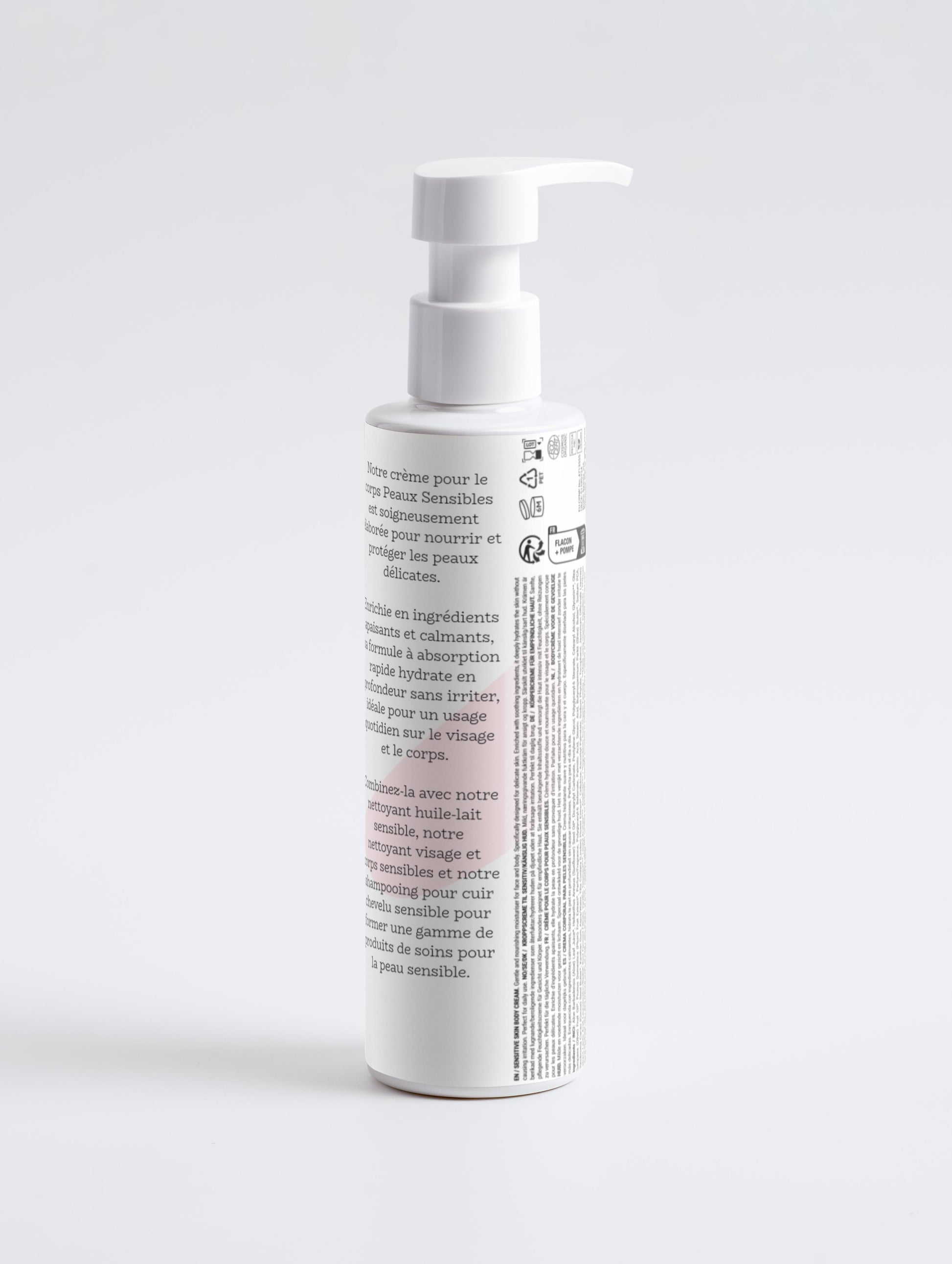 - Pour une routine complète, associez-la au Nettoyant Huile-Lait Peaux Sensibles, au Nettoyant Visage & Corps Peaux Sensibles, et au Shampooing Cuir Chevelu Sensible.