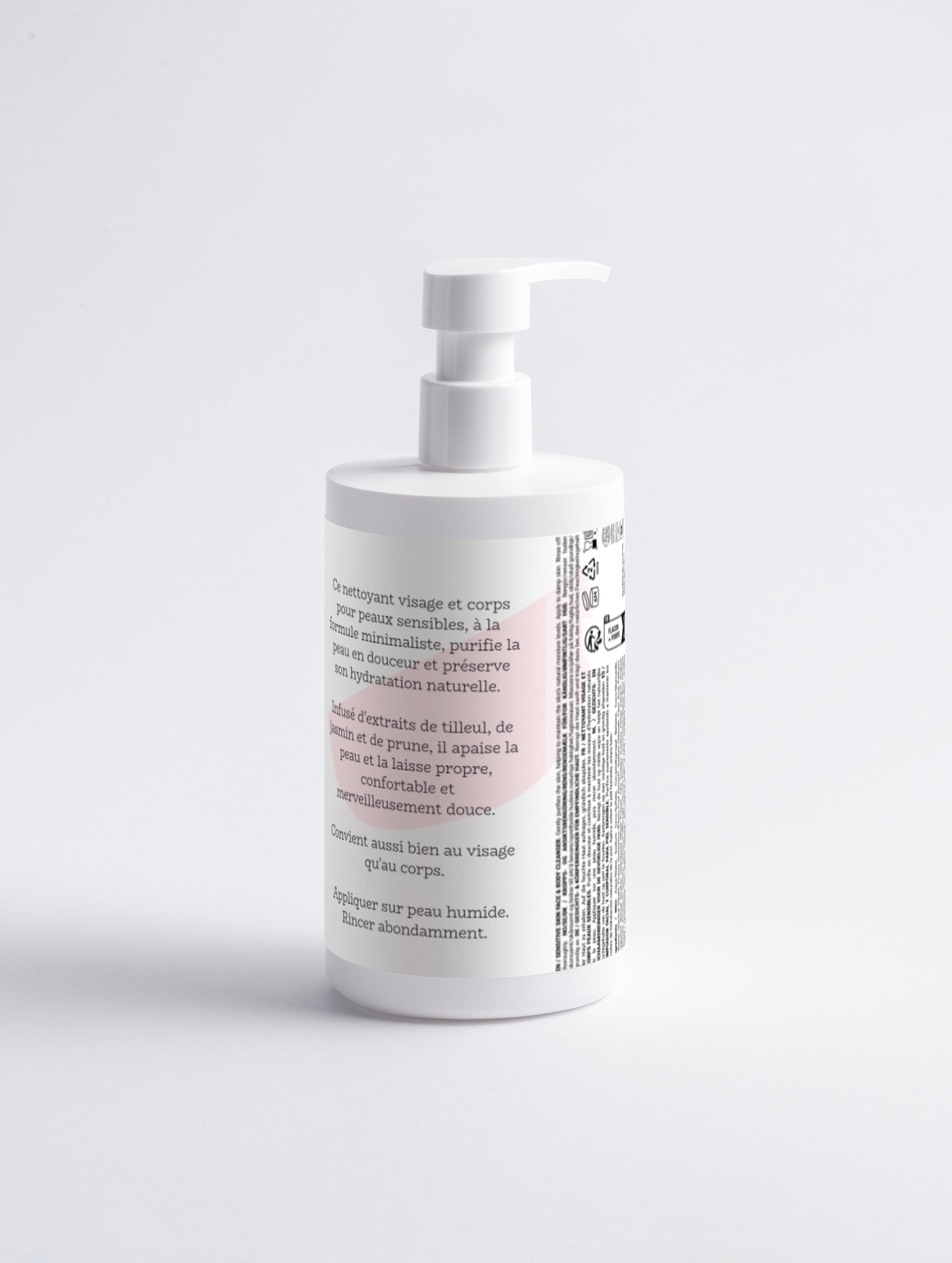 Nettoyant visage et corps à la formule minimaliste, spécialement conçu pour les peaux sensibles et sujettes aux rougeurs. Enrichi en extraits de tilleul, jasmin et prune, il nettoie tout en respectant l’équilibre naturel de la peau pour une sensation de confort immédiat.